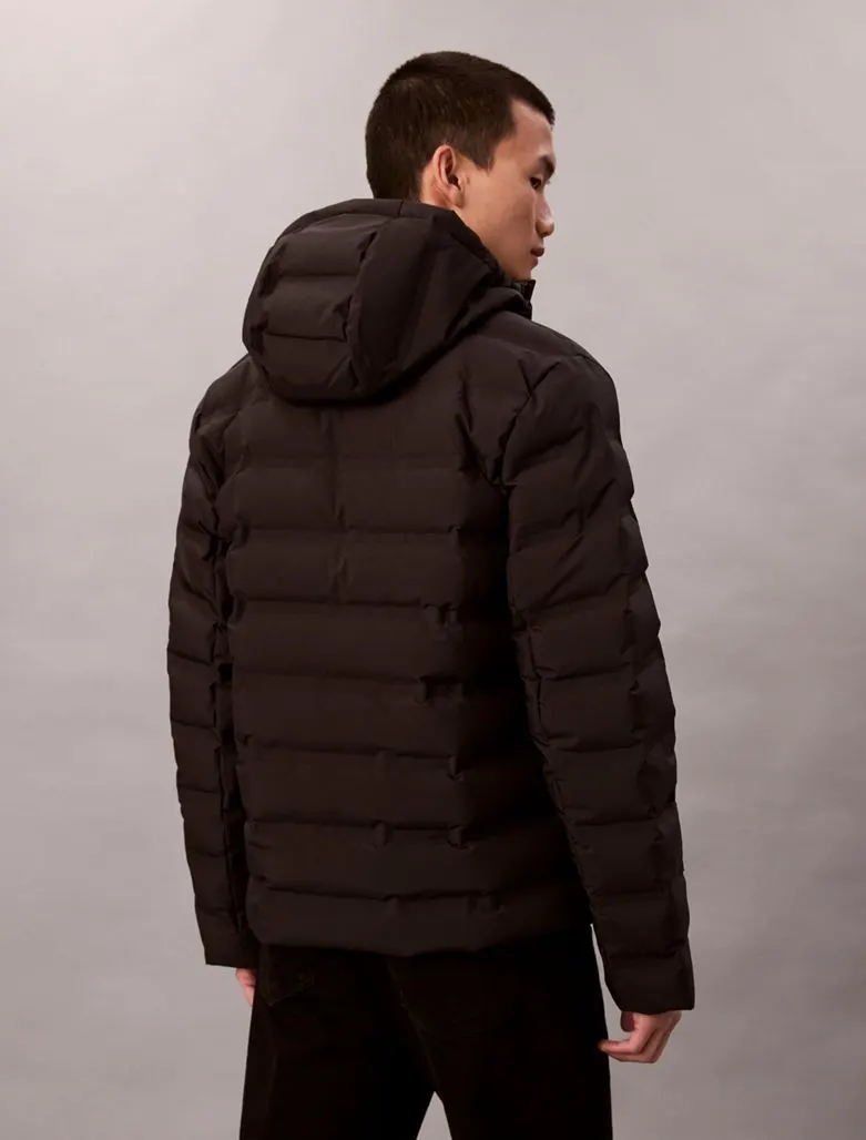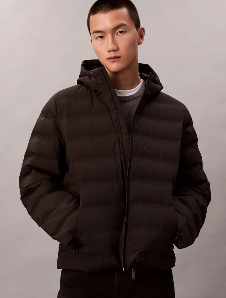 Η καπιτονέ υφή χαρίζει ελαφρύ όγκο και μοντέρνα εμφάνιση, ενώ η κουκούλα με όρθιο γιακά και το εσωτερικό ρυθμιζόμενο στρίφωμα προσφέρουν απόλυτη άνεση και εφαρμογή. Οι πλαϊνές και εσωτερικές τσέπες με φερμουάρ εξασφαλίζουν πρακτικότητα, ενώ το διακριτικό λογότυπο Calvin Klein στο στήθος τονίζει τον premium χαρακτήρα του μπουφάν.