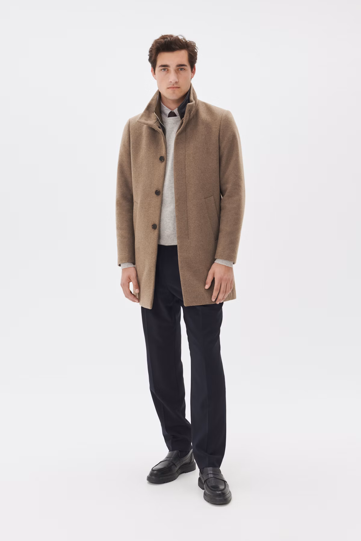 Το σκίσιμο στο πίσω μέρος διευκολύνει την κίνηση, ενώ ο όρθιος γιακάς προσθέτει μοντέρνο χαρακτήρα και προστασία από τα στοιχεία του καιρού. Με κανονική γραμμή (regular fit), το Harvey Wool Coat φοριέται άνετα πάνω από κοστούμι ή casual looks, αποτελώντας βασικό στοιχείο μιας προσεγμένης χειμερινής γκαρνταρόμπας.
